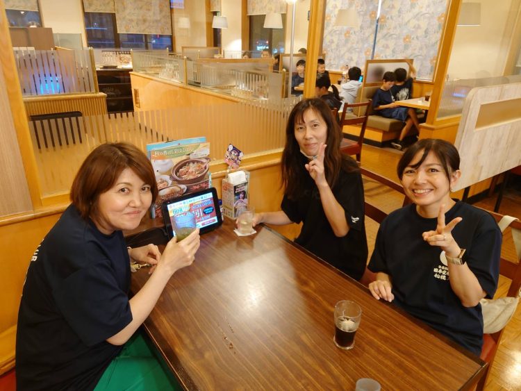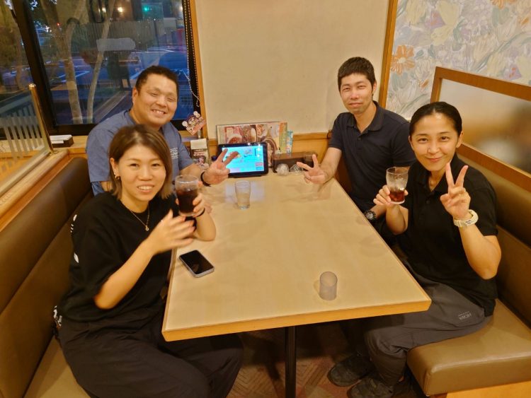 大会のあと、みんなで会場近くのファミレスで賑やかに打ち上げ