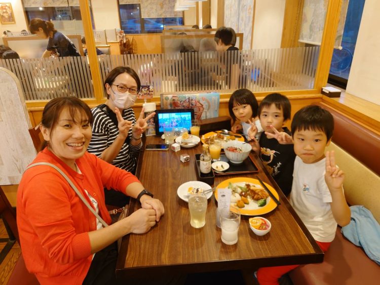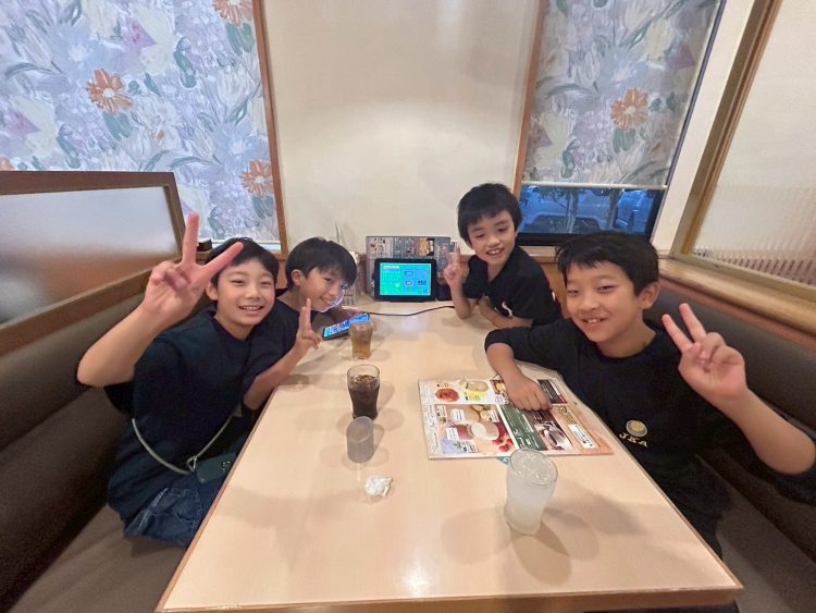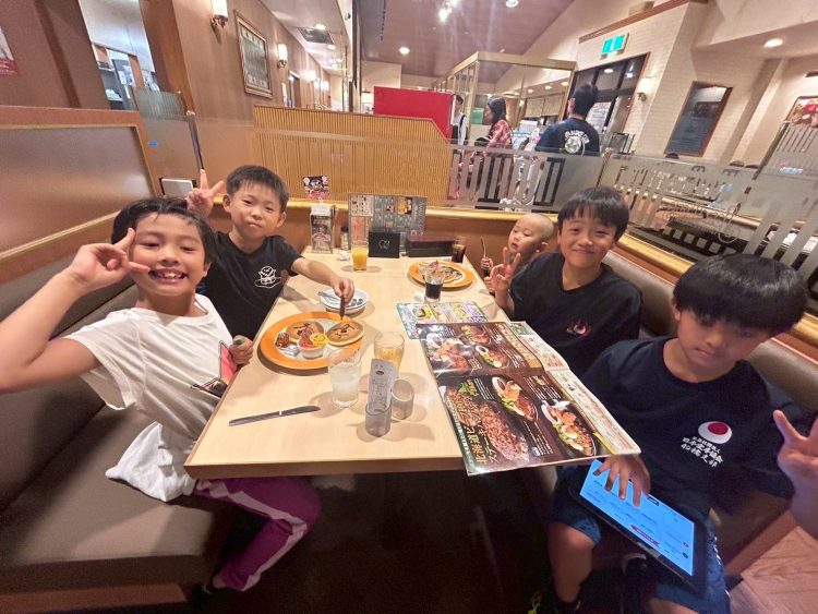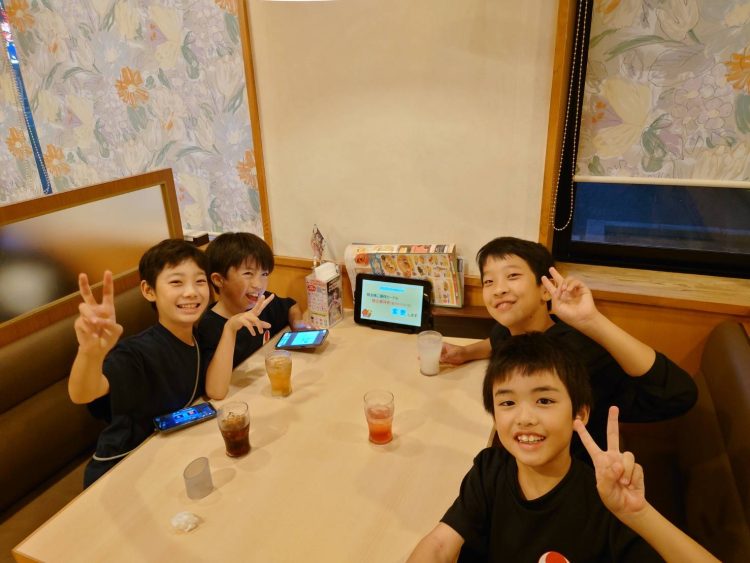 大会のあと、みんなで会場近くのファミレスで賑やかに打ち上げ