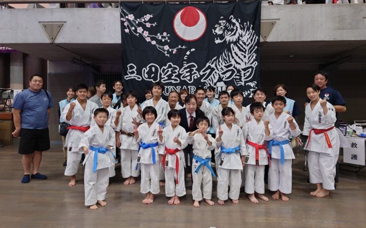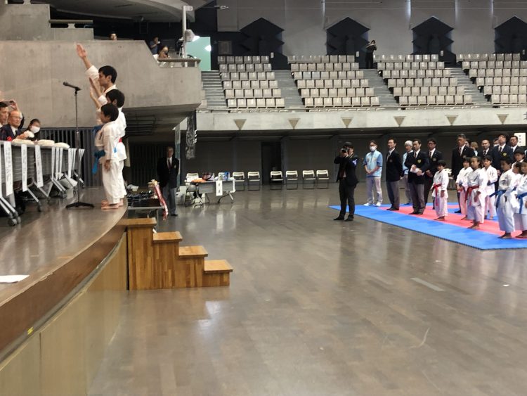 第59回東日本実業団空手道大会に出場しました。 投稿日: 2025年10月16日投稿者 wakaumeカテゴリー お知らせ 10月4日(土)東京武道館(綾瀬)に於いて「第59回東日本実業団空手道選手権大会」が開催されました。 三田空手クラブから少年・一般・シニアの部に合計18名の選手が、そしてスタッフとして7名のみなさんが一日頑張ってくれました。 北野さん、たつきくん、まさきくん親子三人で立派に選手宣誓をしました。