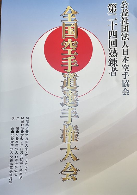 11月15日(土)「第24回熟錬者全国空手道選手権大会」が東京都文京区体育館に於いて開催されました。この熟錬者大会の「れん」の漢字が「練」ではなく「錬」というところに思い入れを感じます。